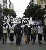 Viktigast av allt är att folkförsamlingsrörelsen har tagit steg för att länka samman arbetarna med de arbetslösas rörelse. Under flera år har Argentina sett många offensiva aktioner från de arbetslösa, som går till direkt aktion och organiserar vägblockader och kräver arbete och bidrag. Dessa "piqueteros" organiserade två nationella konferenser i juli och september förra året för att samordna rörelsen.
